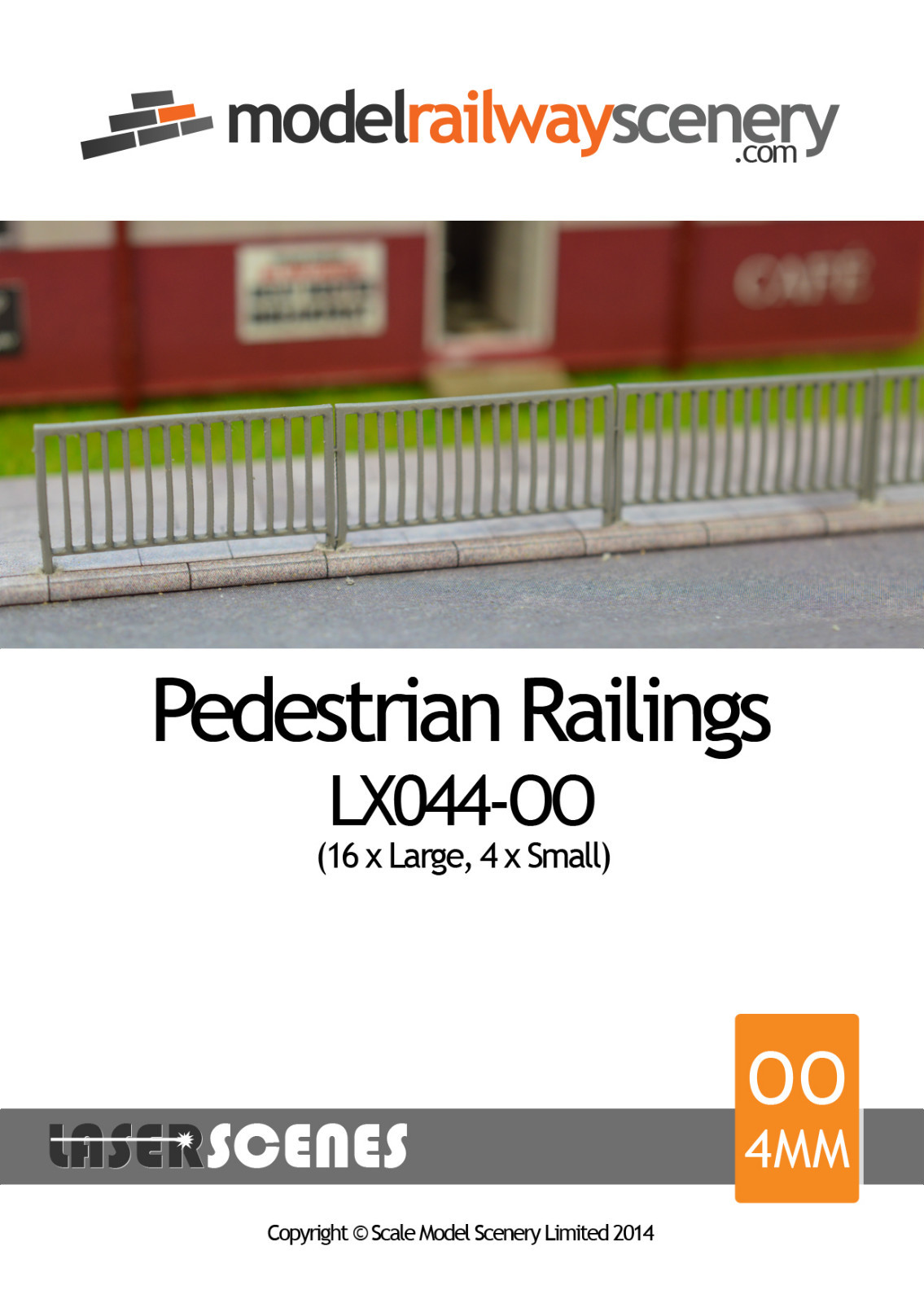 A pack of laser cut pedestrian railings, of the type seen on the roadside all over the UK to provide a safety barrier between pedestrians & a busy road. Perfect for use at pedestrian crossings, the ends of footpaths & outside buildings on your layout. They have a multitude of uses on any Modern Image layout or diorama.