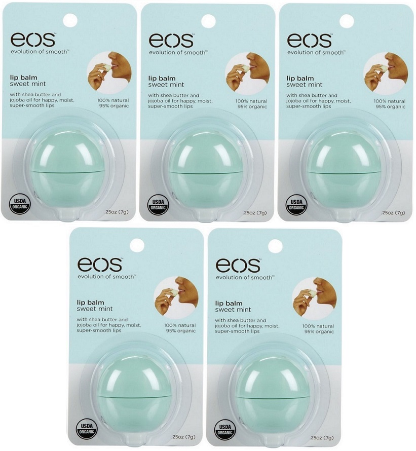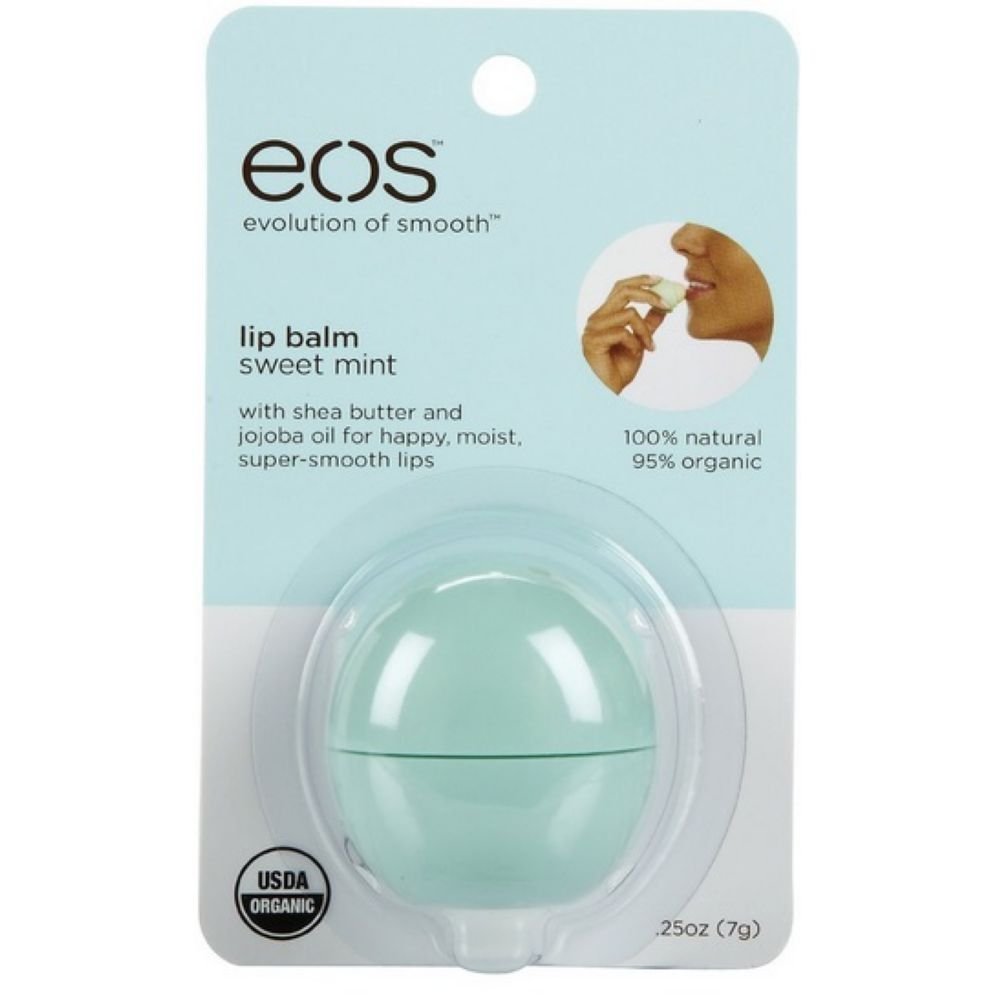 Can a lip balm make you smile? eos thinks so. That's why eos invented this one. eos lip balm is 95% organic, 100% natural, and paraben and petrolatum free. Packed with antioxidant-rich vitamin E, soothing shea butter and jojoba oil, eos keeps your lips moist, soft and sensationally smooth.