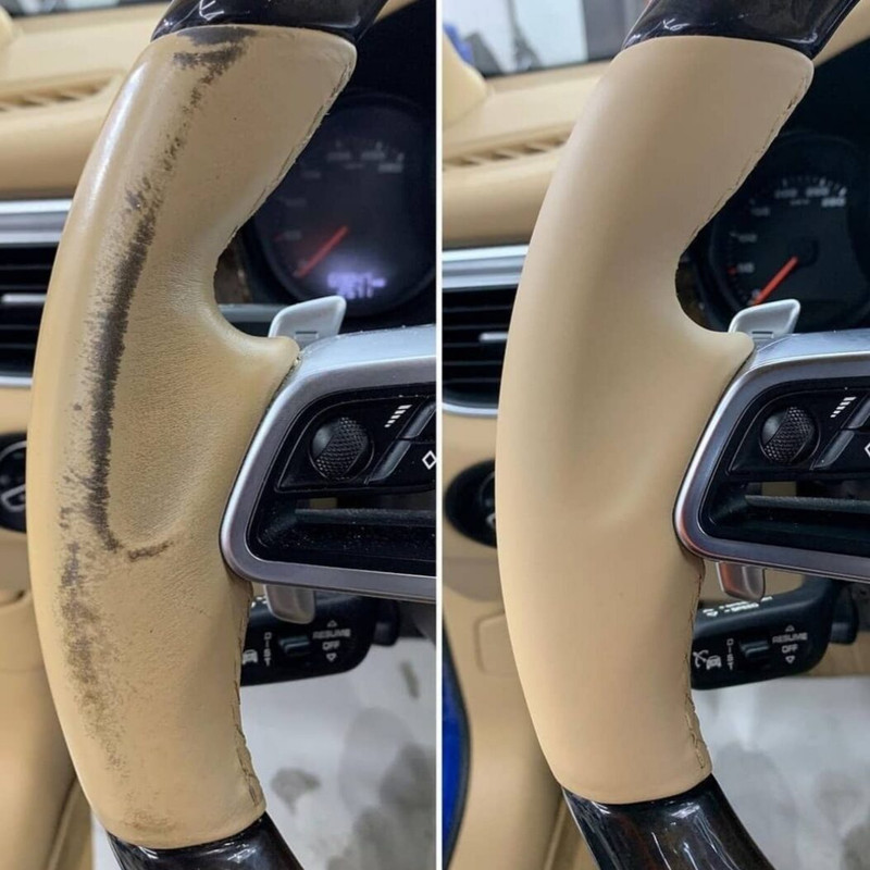 Preparazione al successivo Ritocco/colorazione del volante scolorato in pelle