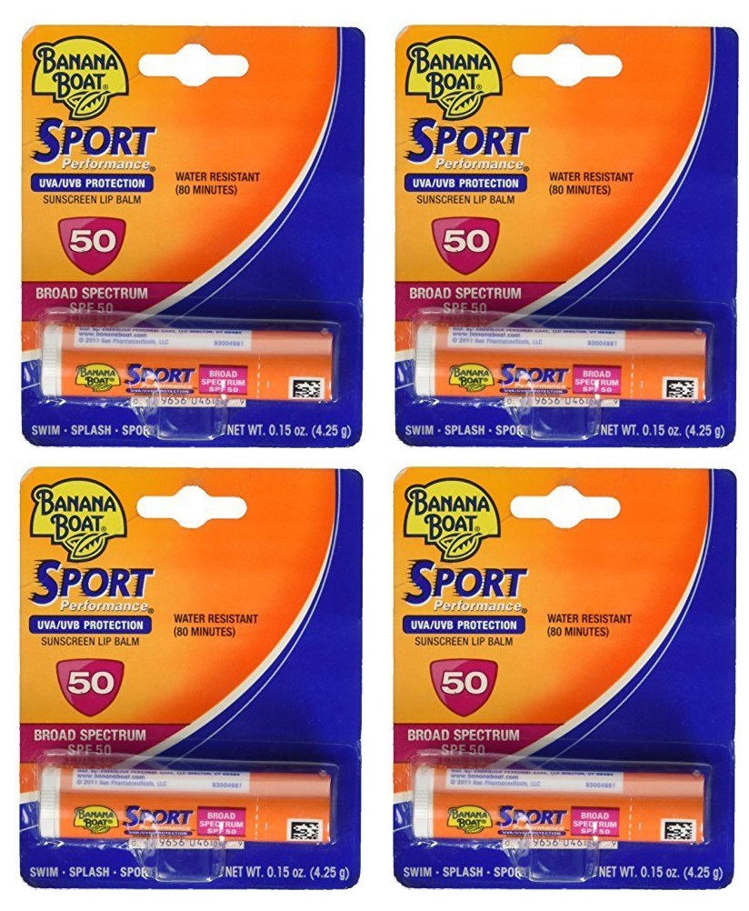 4 Pack Banana Boat Sport Performance Sunscreen Lip Balm Spf 50 .15Oz Each