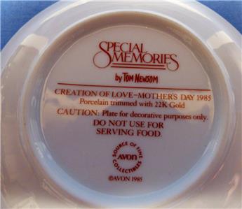 3.1985 MOTHER'S DAY-SPECIAL MEMORIES BY TOM NEWSOM,PORCELAIN TRIMMED WITH 22K GOLD,CRAFTED FOR AVON PRODUCTS.