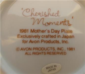 1.1981 MOTHER'S DAY PLATE-CHERISHED MOMENTS-CRAFTED IN JAPAN FOR AVON PRODUCTS