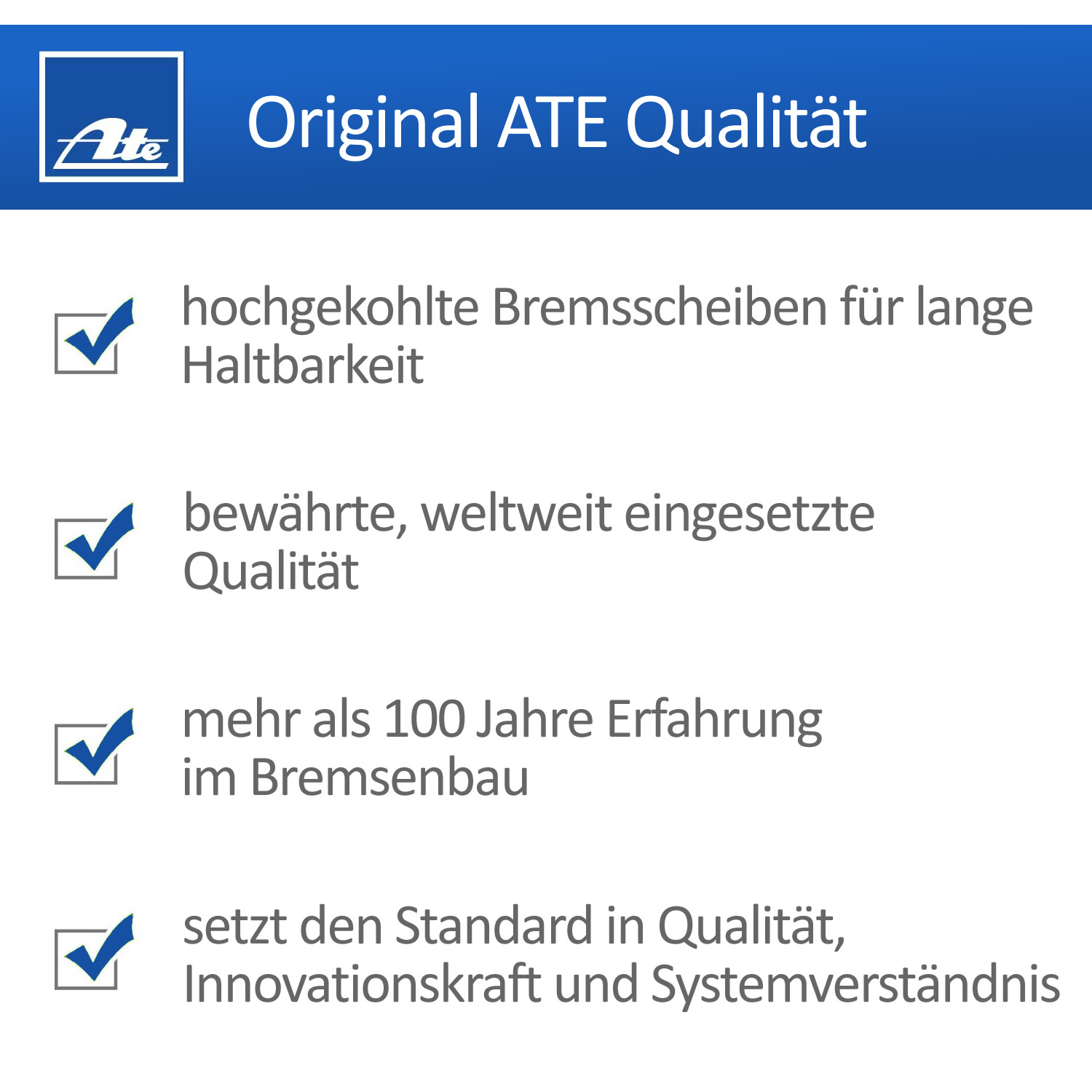 In diesem Angebot bieten wir Ihnen ein Original ATE Bremsen Set passend für Ihr Fahrzeug an.Die Marke ATE des Herstellers Continental hat über 100 Jahre Erfahrung im Bremsenbau und setzt den Standard in Qualität, Innovationskraft und Systemverständnis. ATE setzt ausschließlich auf bewährte und weltweit eingesetzte Qualität, auf die Sie sich zu 100 % verlassen können. Profitieren Sie von der Erfahrung eines der weltweit bedeutendsten Automobilzulieferer und Bremsenspezialisten.