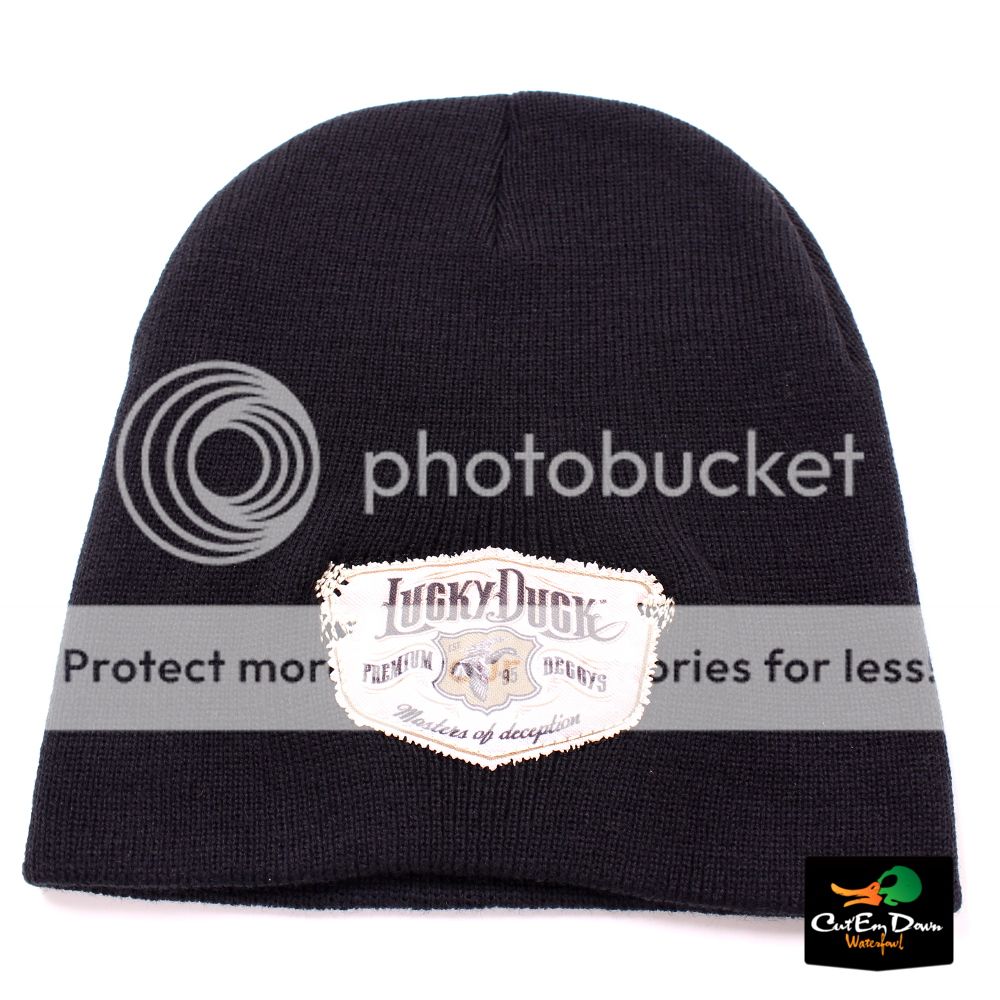 This beanie is a great way to keep your head warm when the temperatures turn cold. Made from very soft Super Stretch material, this skull cap is a must have for any serious waterfowl hunter or outdoors-man. Features the Lucky Duck logo on the front. One size fits most. This listing is for 1 Lucky Duck Beanie in Black. You can buy with confidence as we are an Authorized Lucky Duck dealer. Feel free to contact us with any questions you may have. |