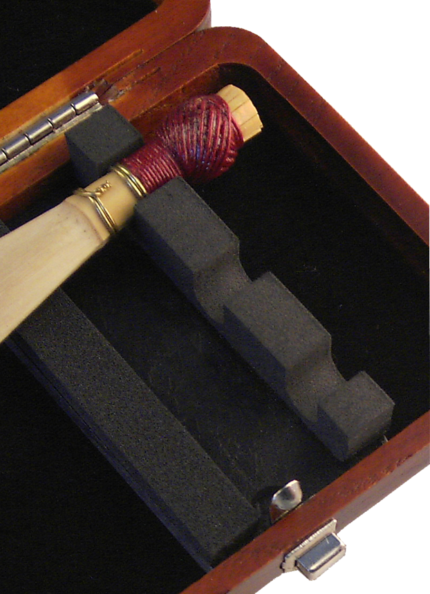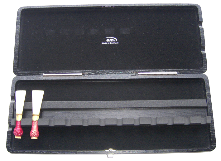 , especially for all woodwinds, which appreciate natural materials. The hold and the perfect drying are guaranteed by the special sponge rubber groove bar. Its surface is coated with nature wax, clear varnish and black or mahogany colored decor varnish. The interior is lined with black velvet and the case features a press stud closure.
