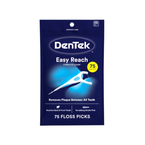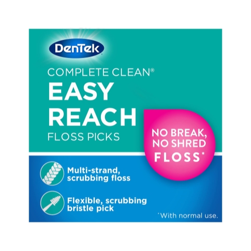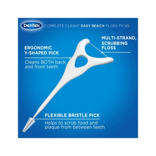 DenTek comfort clean back teeth floss picks unique handle and angled floss head easily reach rear teeth and silky smooth floss cleans between tight spaces while protecting sensitive gums. Want to use floss to keep your teeth clean after meals, but it's just too difficult to get between tight teeth, especially with red and swollen gums? DenTek has an easy, comfortable solution. Try DenTek comfort clean back teeth floss picks. After enjoying your favorite meal, there's nothing worse on your dental health than food and plaque sticking to tight teeth or hiding out in the back of your mouth. Food and plaque can stain and even damage your teeth, and you may end up paying for build up at your next dental checkup. Your teeth may feel smooth after using a toothbrush, but interdental food and plaque can't be removed without flossing after every meal. Make cleaning tight teeth effortless with DenTek comfort clean back teeth floss picks. Does your floss clean between crowded back teeth while protecting sensitive gums? DenTek's comfort clean back teeth floss pick's unique handle helps you get between tight teeth at the back of your mouth. Silky comfort floss slides between teeth and moves gently over sensitive gums to sweep away food and plaque with none of the discomfort of rolled floss. Get DenTek comfort clean back teeth floss picks to maintain your healthy smile without the hassle and pain of using conventional dental floss. Our floss picks come in 75 and 125 count.