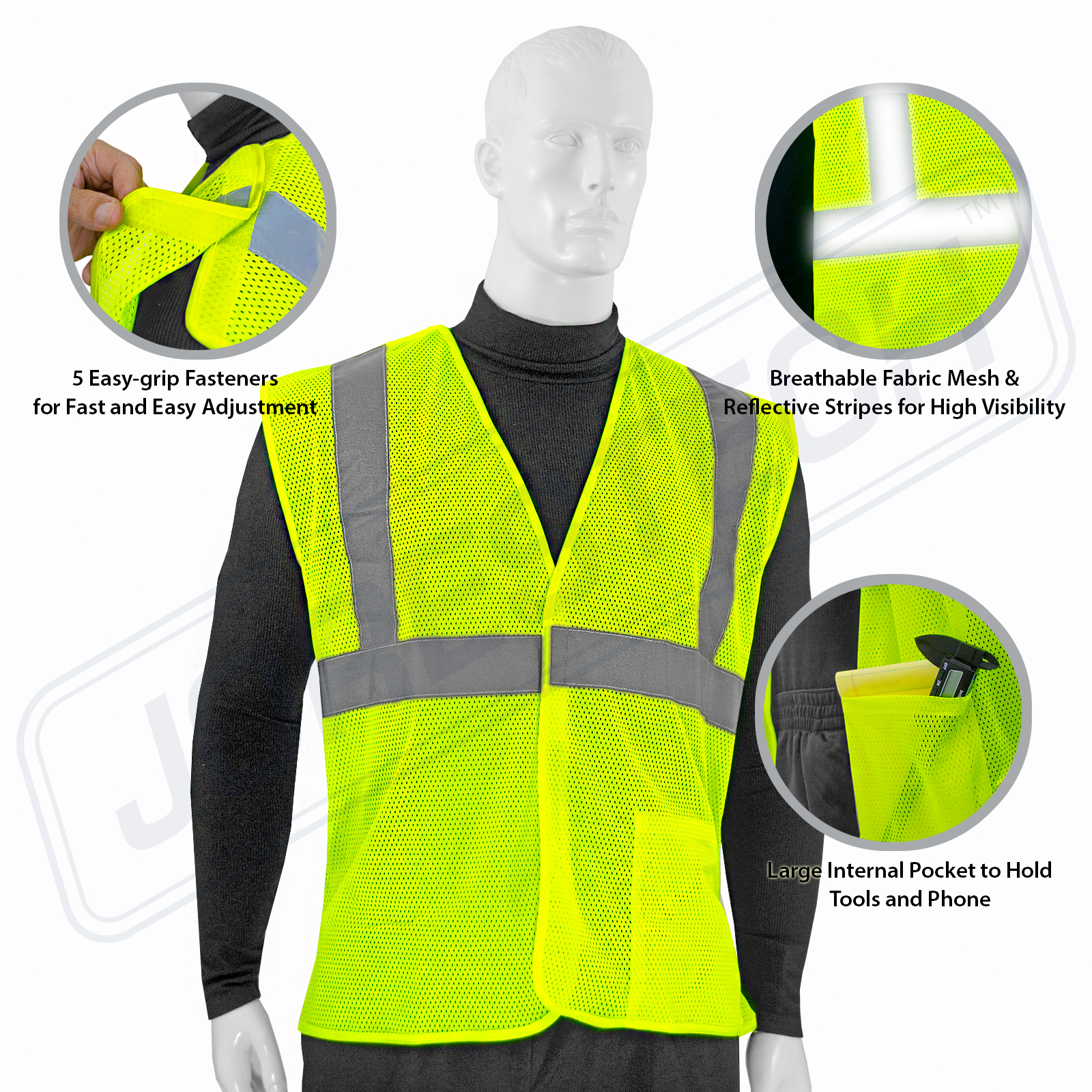 JORESTECH® ANSI/ISEA 107-2015, Type R Class 2, 5 Point Breakaway Mesh Vest.
