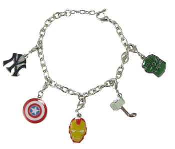 The Five charms include the MLB team logo, Captain America's shield, Iron man's helmet,