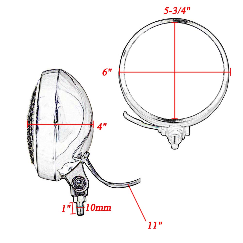 Complete unit with sealed beam 5 3/4" bulb and 10" external wiring leads.