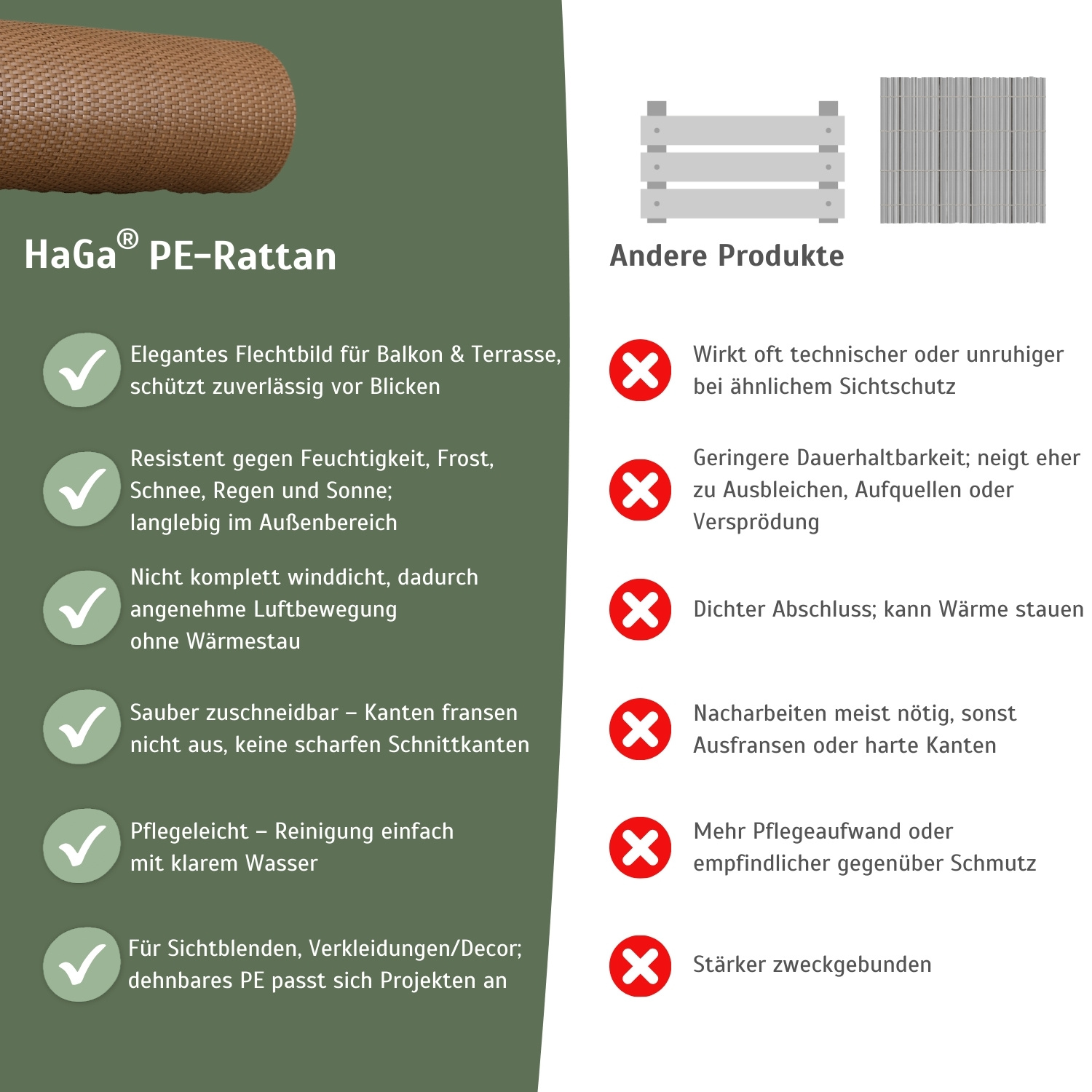 Rattan: robuster PE Sichtschutz für Garten und Balkon