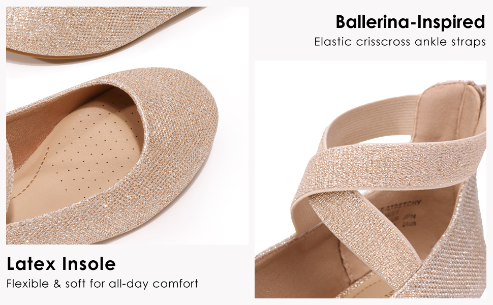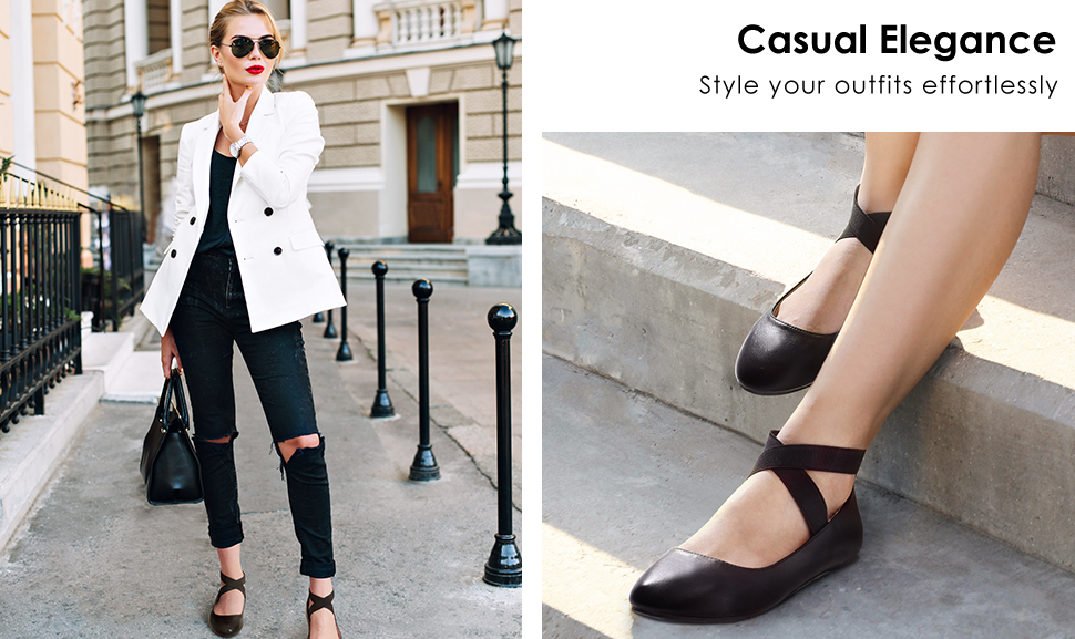 • Elegant & Flexible: These women's ballet flats feature a charming crossover strap design that adds a touch of femininity, while the round toe offers space for your feet to move comfortably.