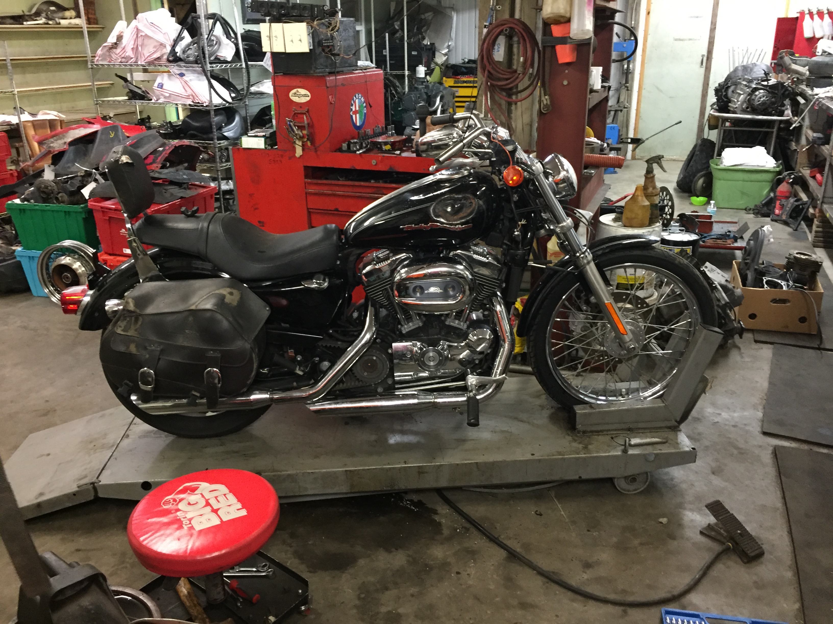Bike was complete when we received it. No issues. Had some scratches and damage to tank but other than that a clean bike. 13,489 miles. Engine was in excellent condition, 250 psi on both cylinders. Transmission shifted through all gears without issue. CLR T