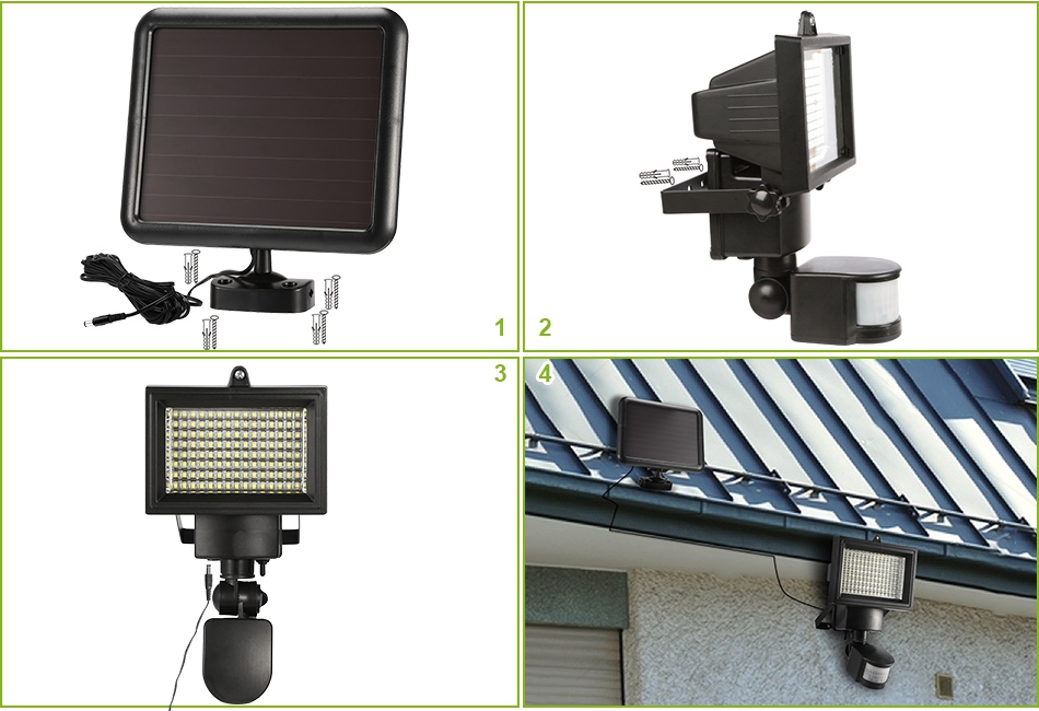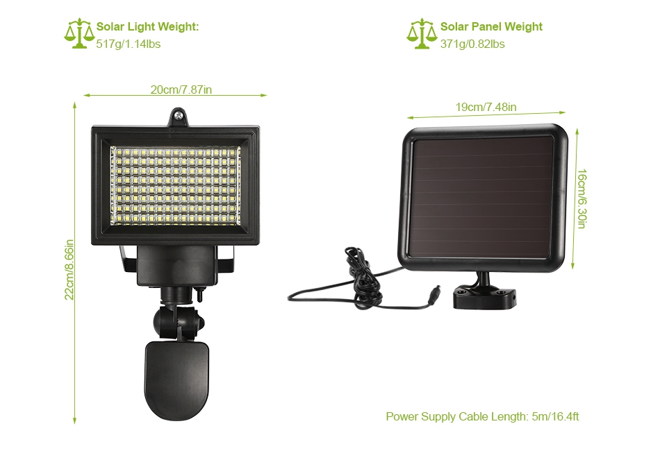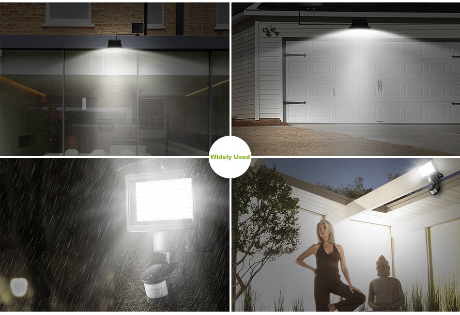 - *100LEDs Ultra-Bright Solar Powered Lights:Inbuilt bright 100 LEDs with 1000lm maximum output and sensitive motion sensor with 120° wide sensing angle which provide up to 180° illumination range and turn the dark space into a bright lighted space for security and safety protection.