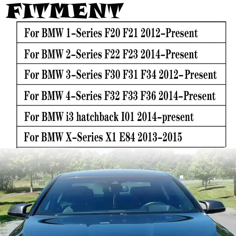 - These mirror covers are compatible with BMW 1 Series F20 F21 116i 118i 120i 125i 130i Hatchback 2012-2016 BMW 2 Series F22 F23 218i 220i 228i Coupe & Convertible 2013-2017 BMW 3 Series F30 F31 320i 328i 330i 335i Sedan & Touring 2013-2017. BMW 4 Series F32 F33 F36 420i 428i 435i Coupe & Convertible & Gran Coupe 2013-2017BMW X Series X1 E84 2013-2015 BMW M Series F87 M2 2014-on * Only Left-Hand Drive (LHD) Car.