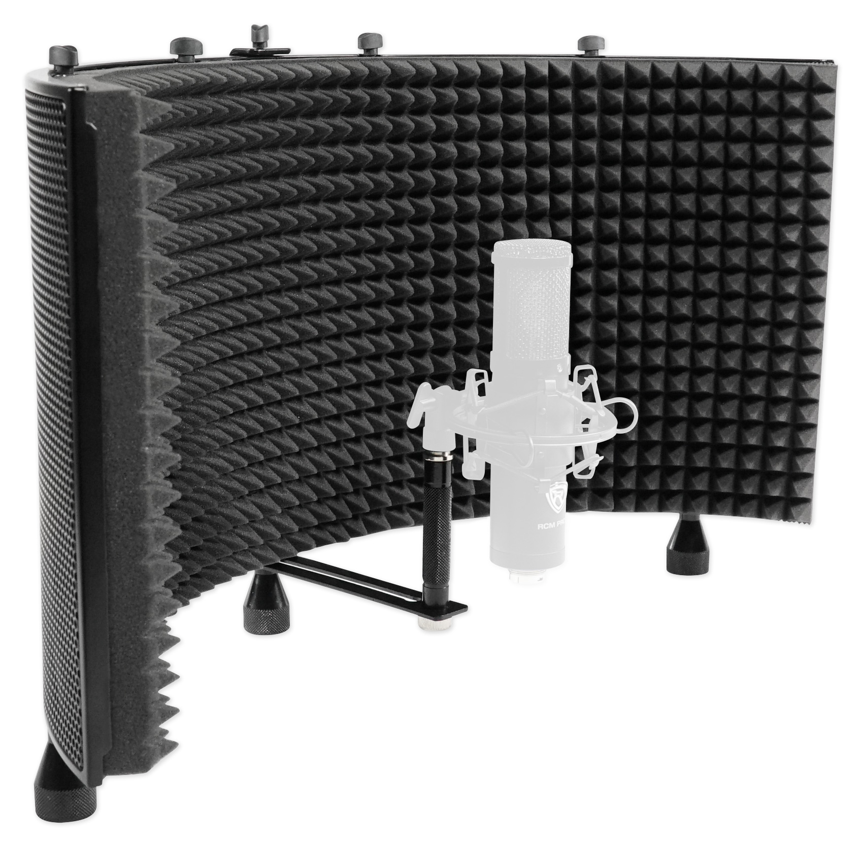 Rockville’s Rockshield 3 studio microphone isolation shield is the latest addition to our ever growing line of Pro Audio studio accessories. Featuring 2-inch-thick high density acoustic foam, the RockShield 3 keeps unwanted outside audio waves and vibrations from affecting your recordings. By creating an acoustic boundary around the microphone, vocal audio flow is improved. Your voice is redirected to the microphone, meanwhile room reflections are prevented from directly entering the recording area. The end result is you will achieve a crisper and cleaner sound. This shield can be mounted to compatible microphone stands or used in a fixed location, like a countertop/tabletop. Easy installation and studio quality performance will quickly make the Rockshield 3 your go-to sound dampening isolation shield.