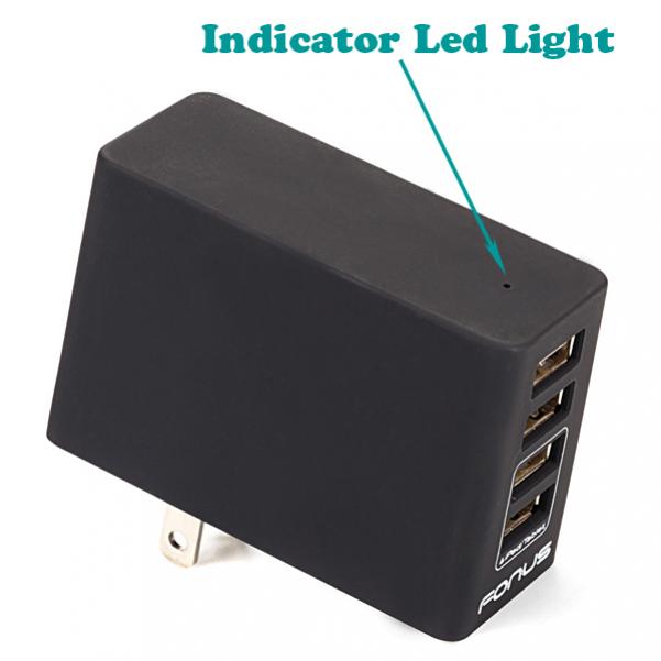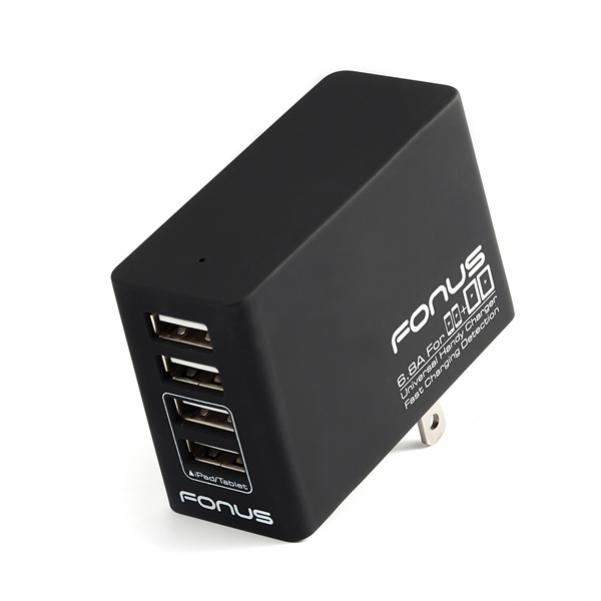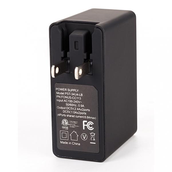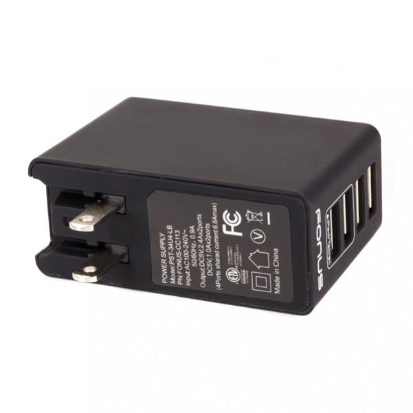 - Fonus 34W 6.8 Amp 4-Port Compact Rapid USB Home Wall Charger with Smart Detect. Folding Prongs.