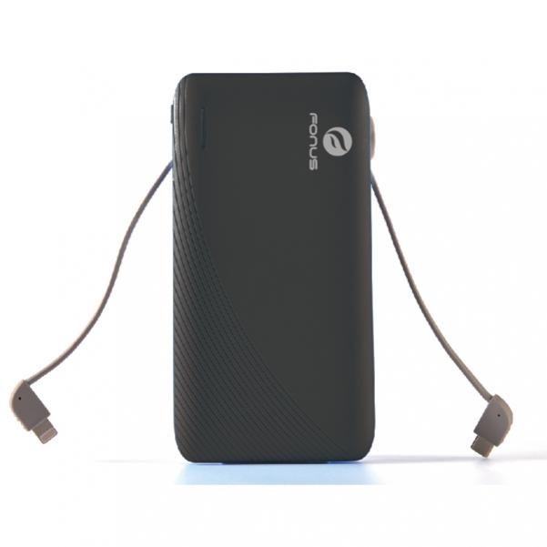 Slim 10000mAh Portable Battery Charger Backup USB Power Rapid Charge Dual USB Port Adapter Built-in Cables Black. Are you tired of running out of battery power on your devices during crucial times when you need to be connected? Never be without a boost for your phone or tablet again. Fonus Ultra-slim power bank is the perfect smart accessory for your smart devices! The LED indicator help you easily know the charging status and battery level to effectively avoid charging accident. Ultra-slim design and touch smoothly. With compact size and lightweight, make it an absolute must-have product in your home and for your travel. Includes a Built-in iP Cable Built-in removable Micro-USB Cable Separate Micro-USB and TYPE-C Charging Cables. You can charger an iPhone/iPad and an Android Phone/Tablet at the same time with this power bank.