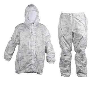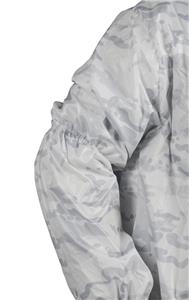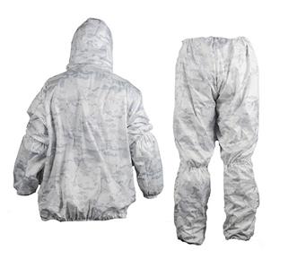 Multicam Alpine is a brand new ultralight winter camouflage suit (Jacket + Pants) that will fit over your winter clothes and make you vanish in snowy surroundings. It is made of 100% polyester that is very light, strong and wear-resistant. The jacket has a large draw-stringed hood, designed to go over the helmet, elastic bands on the elbows for tighter fit, elastic cuffs on the sleeves, a zipper in the front and draw-stringed bottom. The pants have draw-stringed waist, elastic bands in the area of knees for tighter fit and elastic cuffs on the bottom. The suit is packed in a small (7"x10") draw-stringed pouch made of the same material. The total weight of the suit with the pouch is only 11 ounces. Size: One-Fit-All Weight: 11 oz.
