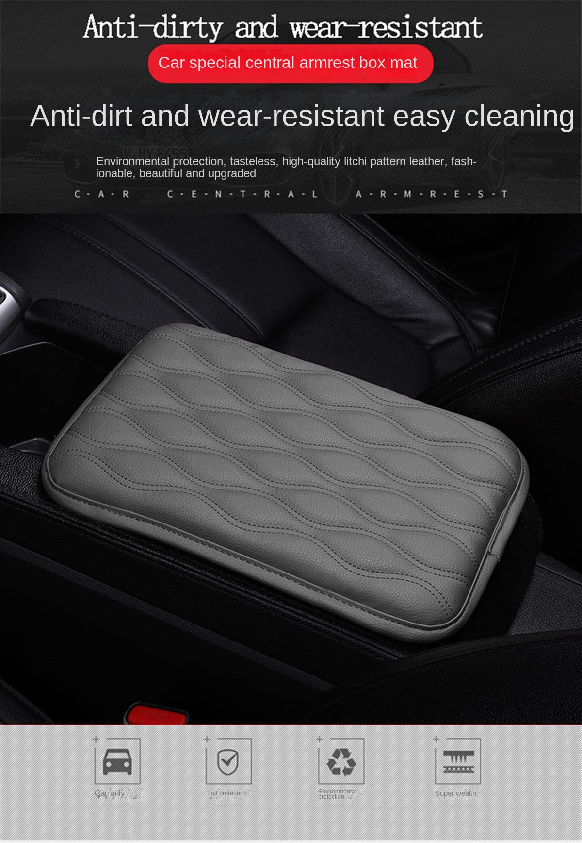 Protects car armrest box from damage, spills, scuffs and dirt.