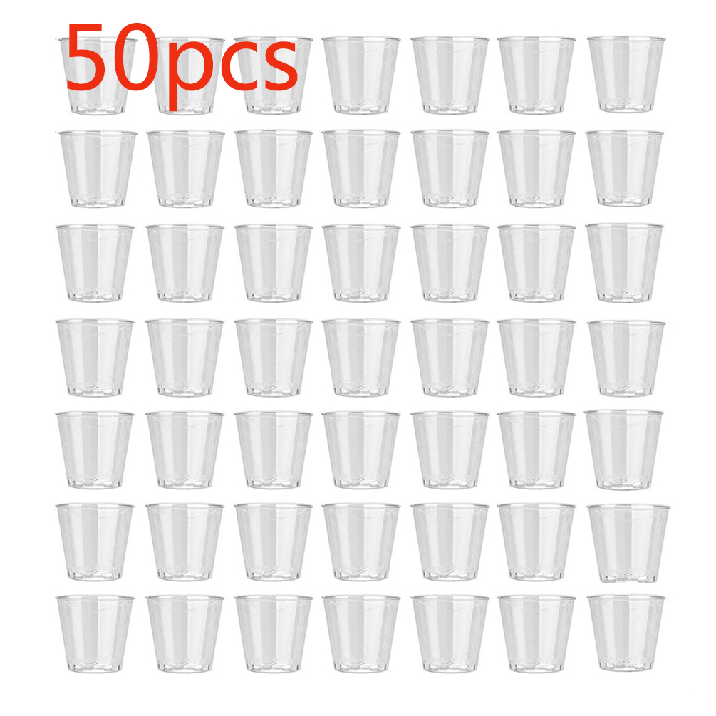 50PC Clear Plastic Disposable Party Shot Glasses Jelly Cups Tumblers Birthday