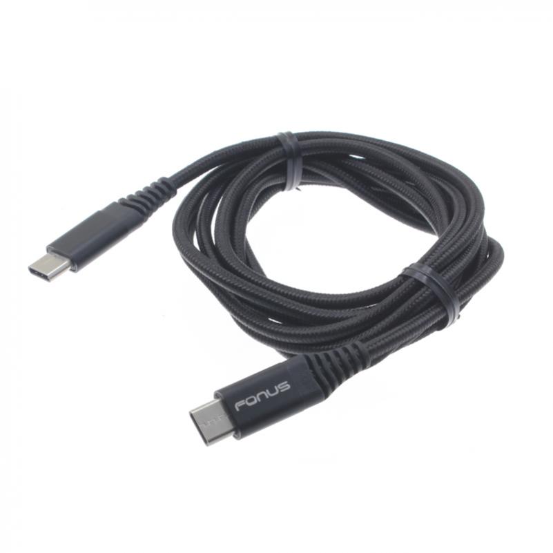 Black 6ft Long Braided Type-C to Type-C Cable [C-to-C] USB Wire Sync USB-C Power Data Cord [Rapid Charge Support] High. Durable Braided USB Type-C to USB Type-C Cable - 6 Feet (Approximately 2 Meters). Connect USB Type-C enabled devices to other USB Type-C devices and accessories such as a smartphone, car/wall charger or multi-port adapter with Type-C port. The USB cable provides a USB Type-C connector at both ends for quick and easy data transfers. The cable supports up to 3 Amps of power output for powering and fast charging of phones and tablets equipped with a USB Type-C port. For backup charging, it can be used in conjunction with any USB Type-C phone charger, portable charger, or multi-port USB charger to charge a laptop or other USB Type-C enabled devices. It can also quickly transfer music, photos, and data to and from a laptop with transfer speeds up to 480 Mbps. The cable�?s USB Type-C connector offers a user-friendly reversible design that makes it possible to easily connect the cable to a device. No more wondering which way faces up when plugging it in.