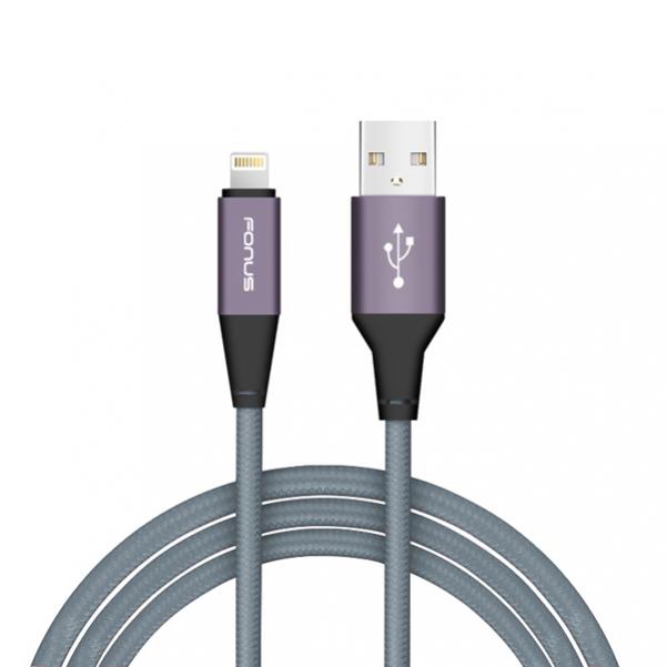 Braided USB Cable Charger Power Sync Wire Gray 6ft Long Cord [Supports Fast Charge]. 6ft Long Braided Cable. Sturdy braided cable with reinforced aluminum connector housings resists wear and tear and kinking, much more durable than regular plastic cables. Measuring at 6 feet, this cable is long enough to charge your devices more conveniently and flexibly. Ideal for syncing and charging your newer iPhone, iPad and iPod Touch models. High performance braided cables use only the highest quality components. Meets the Latest Specifications for Full Performance and Compatibility, Cables are Triple Shielded for Superior Rejection of Radio Frequency and Electromagnetic Noise and Interference. Aluminum Plated Contacts Prevent Corrosion; Providing Long Life, and Ensuring Maximum Signal Integrity. Color: Gray Cable with Black/Purple Connector. Color May Be Slightly Different From Actual Item Due to Image Rendering and Lighting During Photo Shooting.