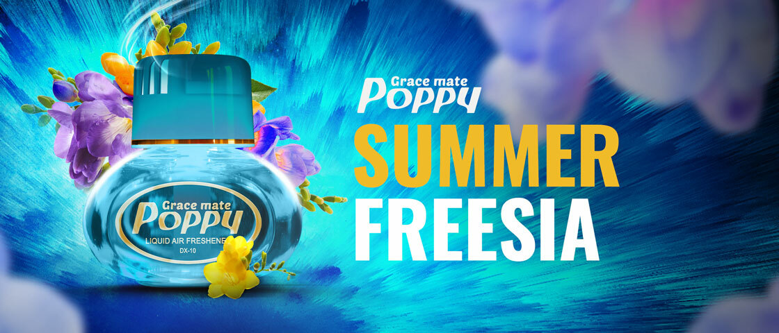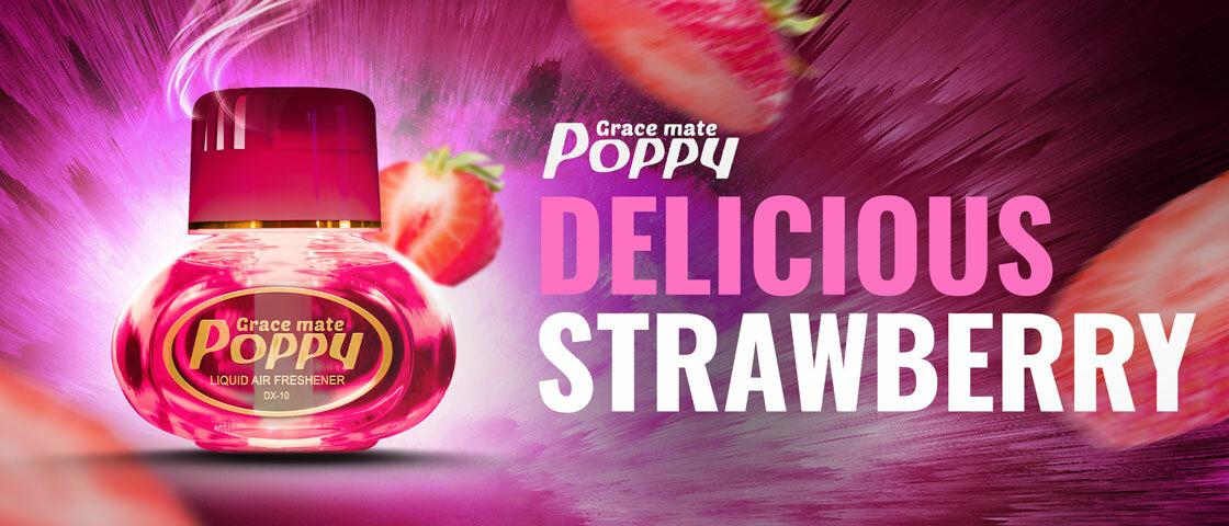 Poppy Grace Mate originated in Japan in the 1970s. At that time, the country experiences rapid economic growth, causing the percentage of car owners to increase swiftly. It inspires the company DIA Chemical to develop the first liquid air freshener for cars under the name 'Gracemate Poppy'. After years of refining the design, the product found its way to the market in 1987 and became an immediate success. 'Gracemate Poppy' remained the market leader for many years. Thanks to a successful TV commercial with a well-known Japanese comedian, the product gained even more fame in Southeast Asia. Later, it’s popularity spread to Europe, where especially truckers gave it a permanent place in their interior.