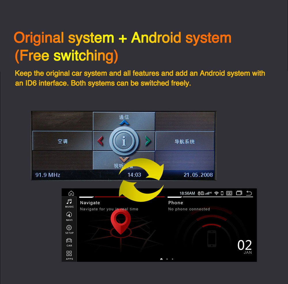 4. Be compatible with factory Canbus ,support iDrive,Steering Wheel Control, car info.