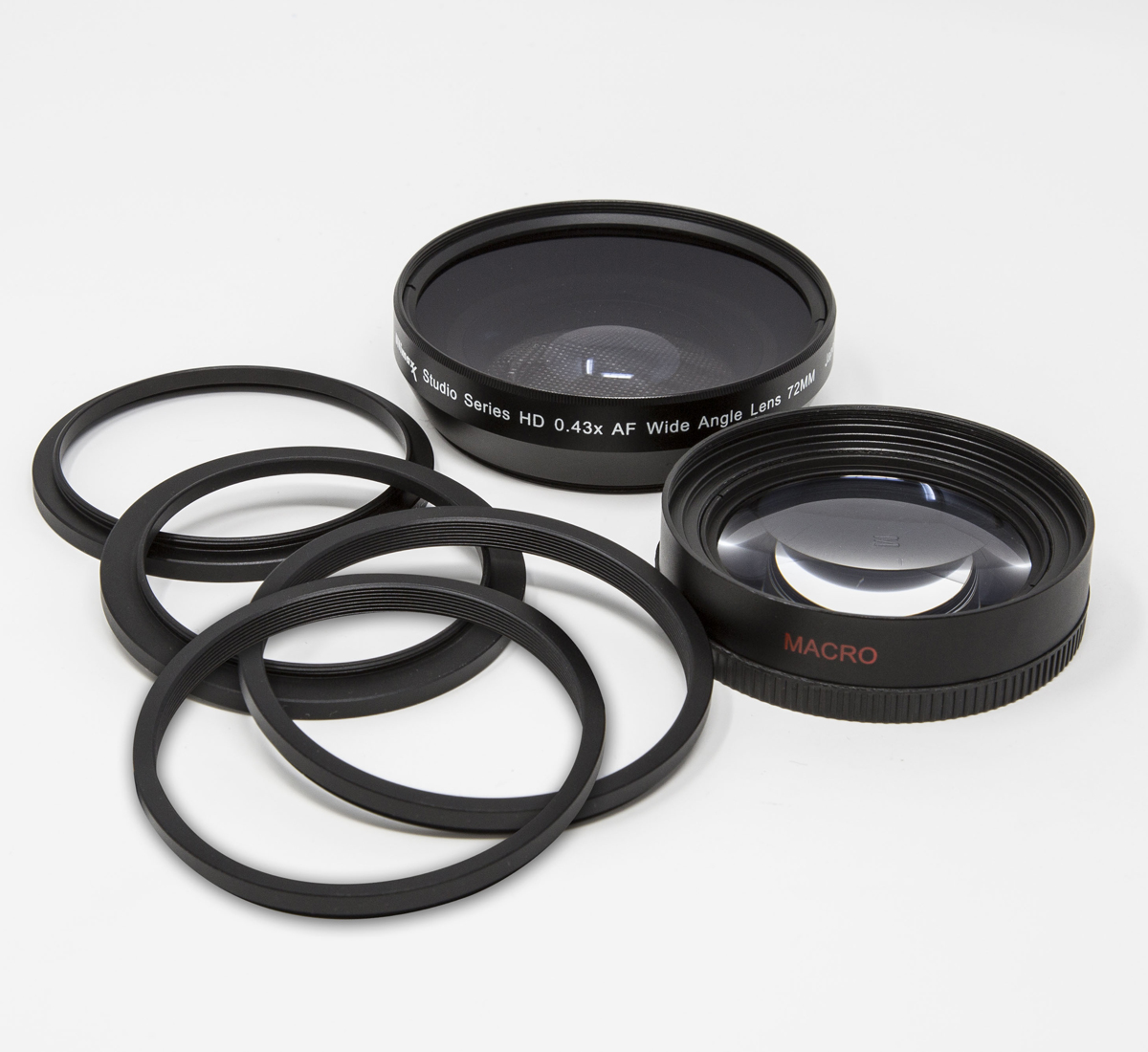 ULTIMAXX 72mm 0.43x Wide Angle Lens with 62/72, 67/72, 77/72 Ring Adapters
