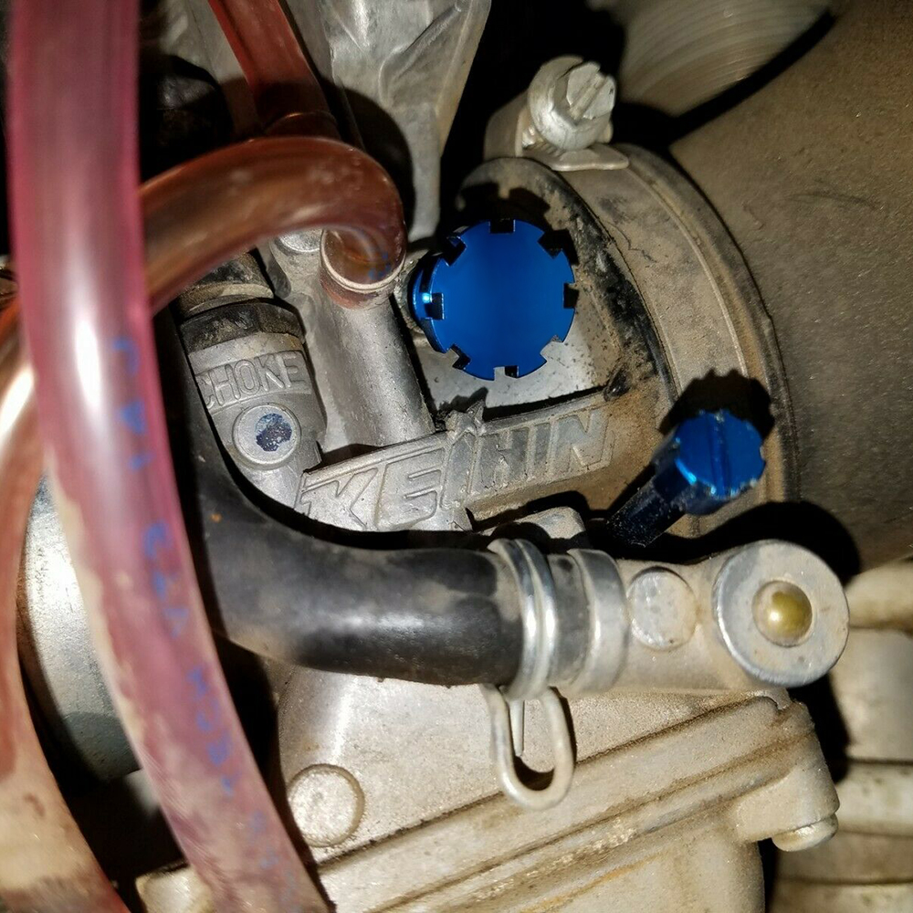 The Carburetor Adjustment Screws are a great addition for those 2-Stroke lovers!! They replace your stock Carburetor Air & Idle Screws and allow you to make the necessary adjustments on the fly without the use of tools. They are made out of 6061-T6 Aluminum and anodized to give you that factory look.