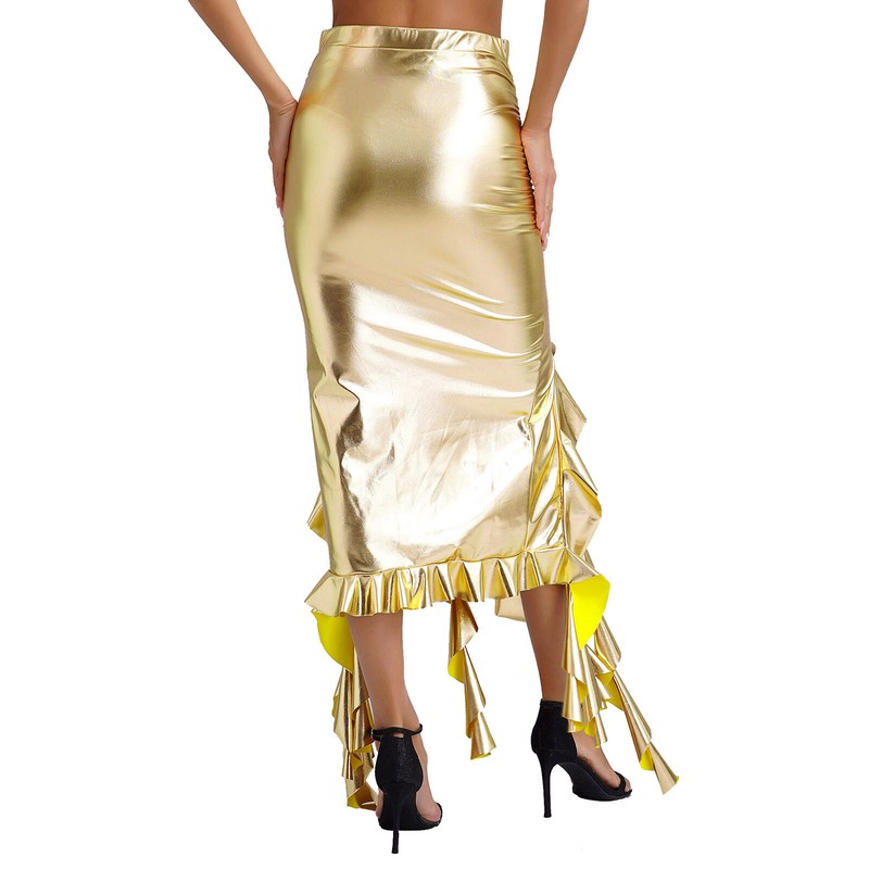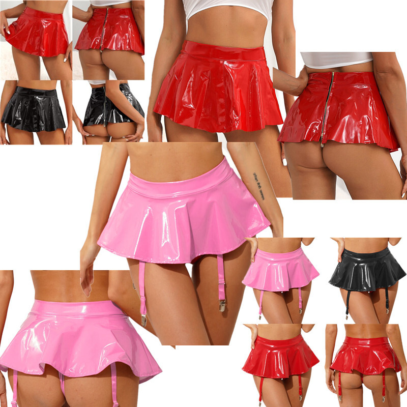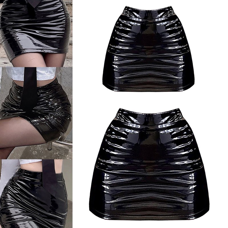 - Women’s patent leather wetlook skirt, hot and attractive.