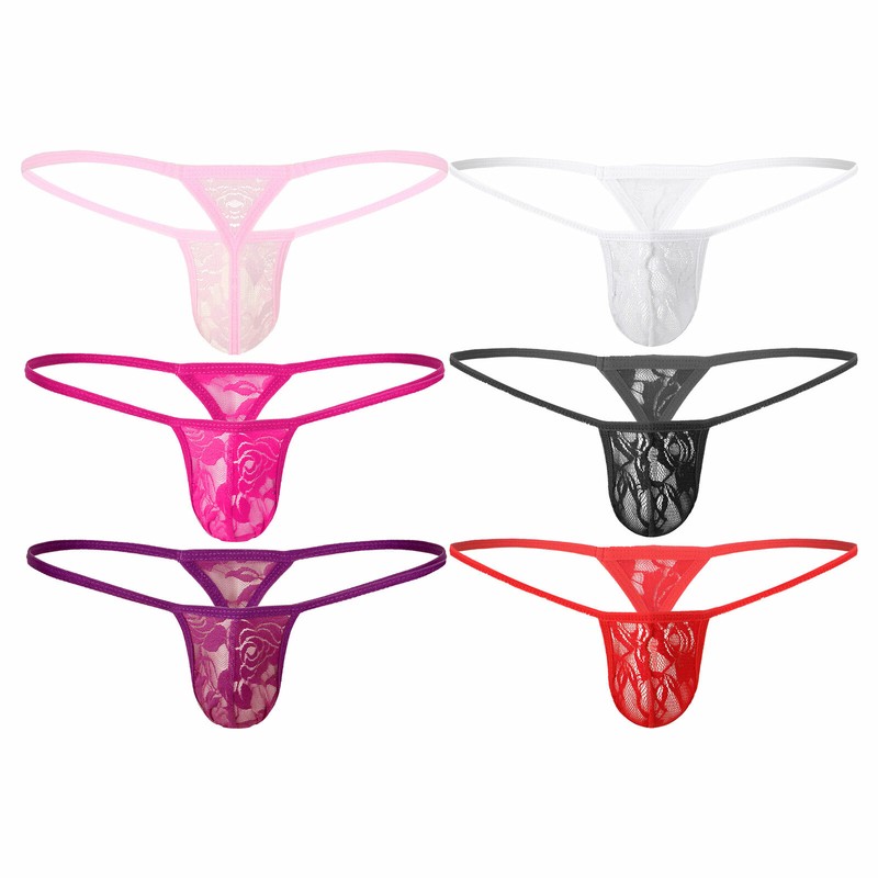 Men’s bikini G-string thong underwear, sissy panties style, pull on closure.