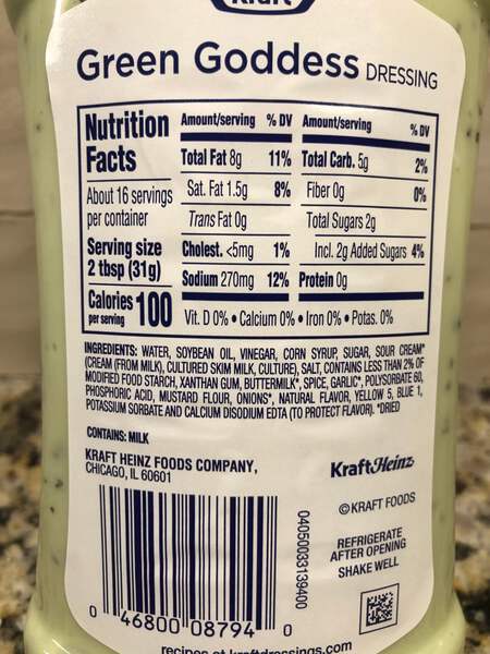 Kraft Green Goddess Dressing adds cool, refreshing flavor to almost anything. Bursting with sour cream, vinegar and spices, this family favorite dressing for salad delivers deliciously creamy texture and zesty flavor in every bite. This multi use dressing is thick enough for spreading or dipping, and it adds a wonderful texture to salads. With no artificial flavors and no MSG added, youll feel good about adding this dressing to all your favorite appetizers and entrees. Try green goddess dressing as a dipping sauce for chicken and veggies, or use it as a pasta salad or sandwich dressing. This unique flavored dressing is packaged in a 16 fluid ounce squeezable dressing bottle with a convenient applicator top so you can add the perfect amount to all your favorite dishes.