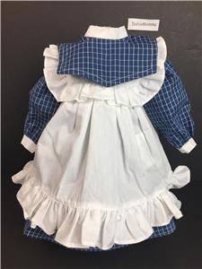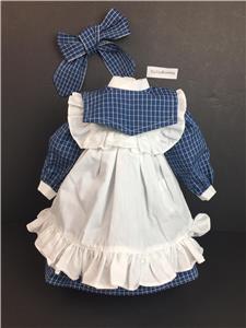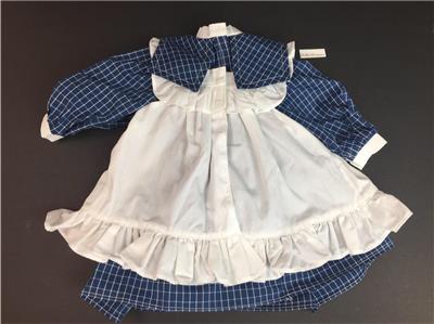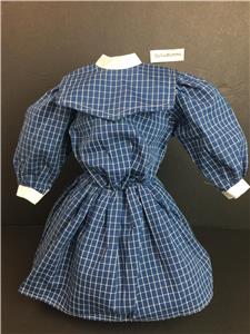 "Samantha dressed like a proper young lady even when she was playing. Her dress of blue and white windowpane check has a big yoke and crisp white cuffs. The ruffly play pinafore is supposed to keep the dress clean."- American Girl