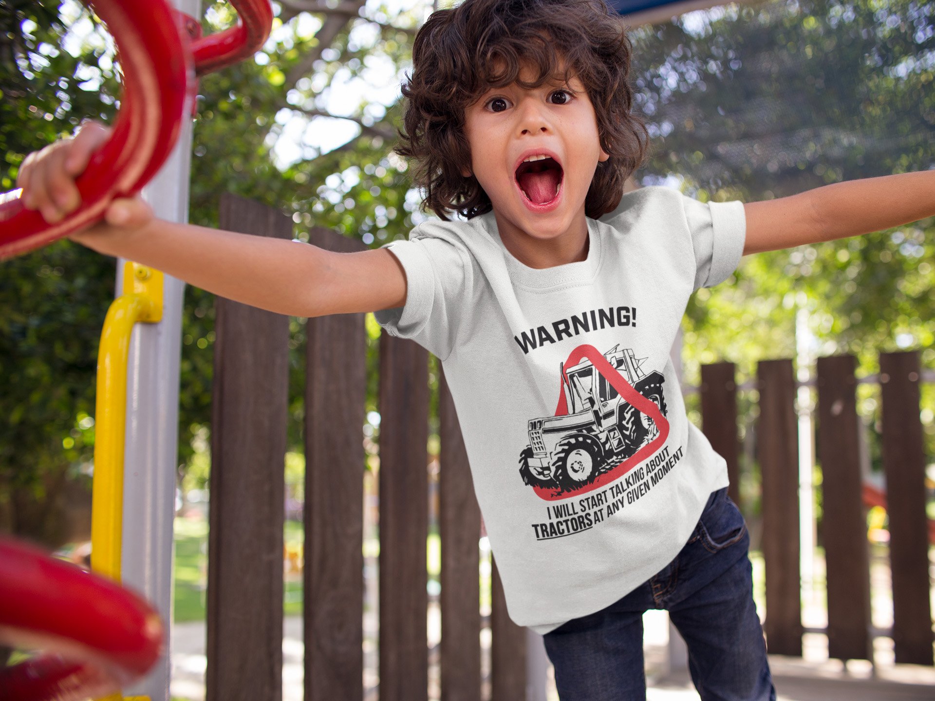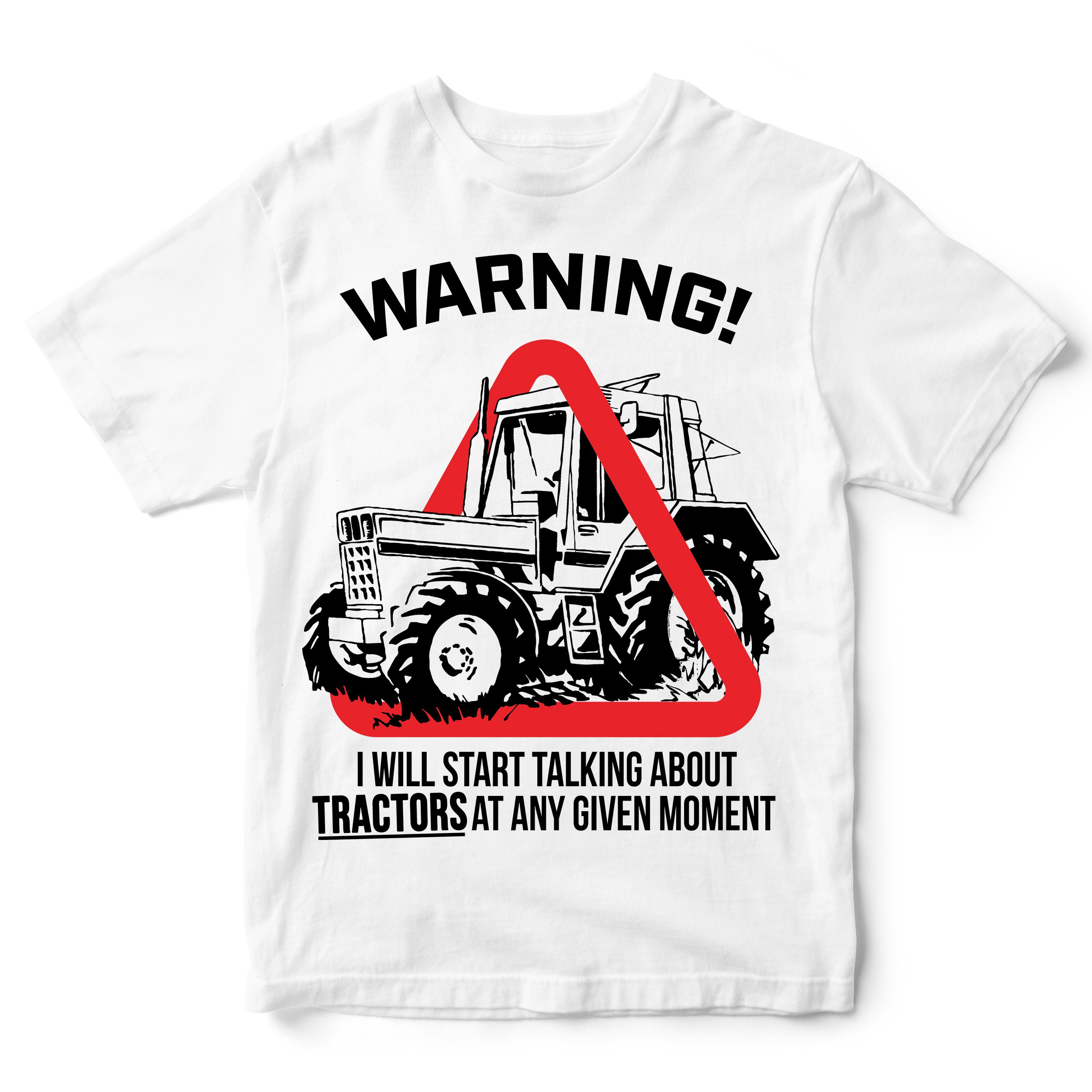 TRACTOR T SHIRT GIFT IDEA: Featuring The Funny Quote “WARNING I Will Start Talking About Tractors At Any Given Moment”. The Perfect Birthday Present For Your Son Who Loves Tractors And Anything Farm Related.