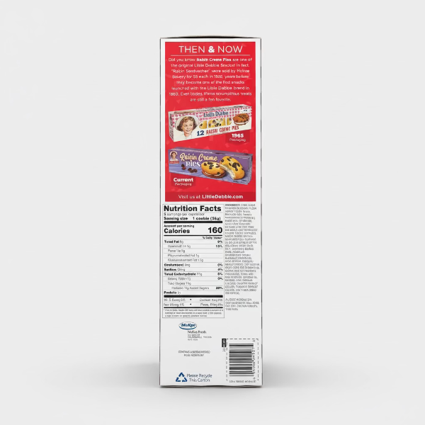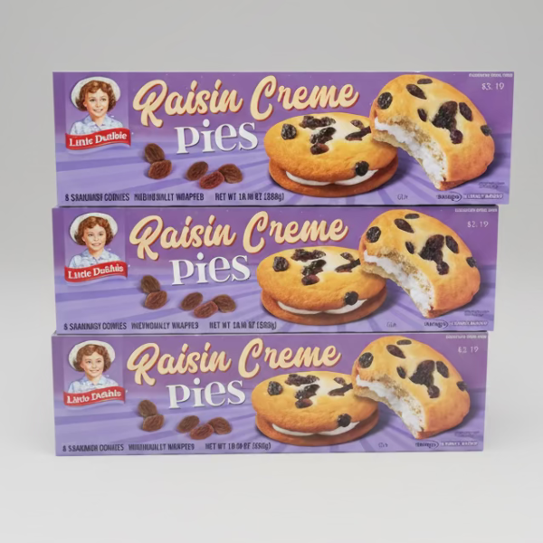 Did you know Little Debbie Raisin Creme Pies were one of our original snacks? Since the early 1960s, Raisin Creme Pies have been a fan favorite treat. What makes them so delicious, you ask? A layer of our classic creme is found between two soft vanilla-flavored sandwich cookies. Then we sprinkle the top with scrumptious raisins! If you take a bite of this snack, you won’t be able to resist the urge to eat one more! Try them today!
