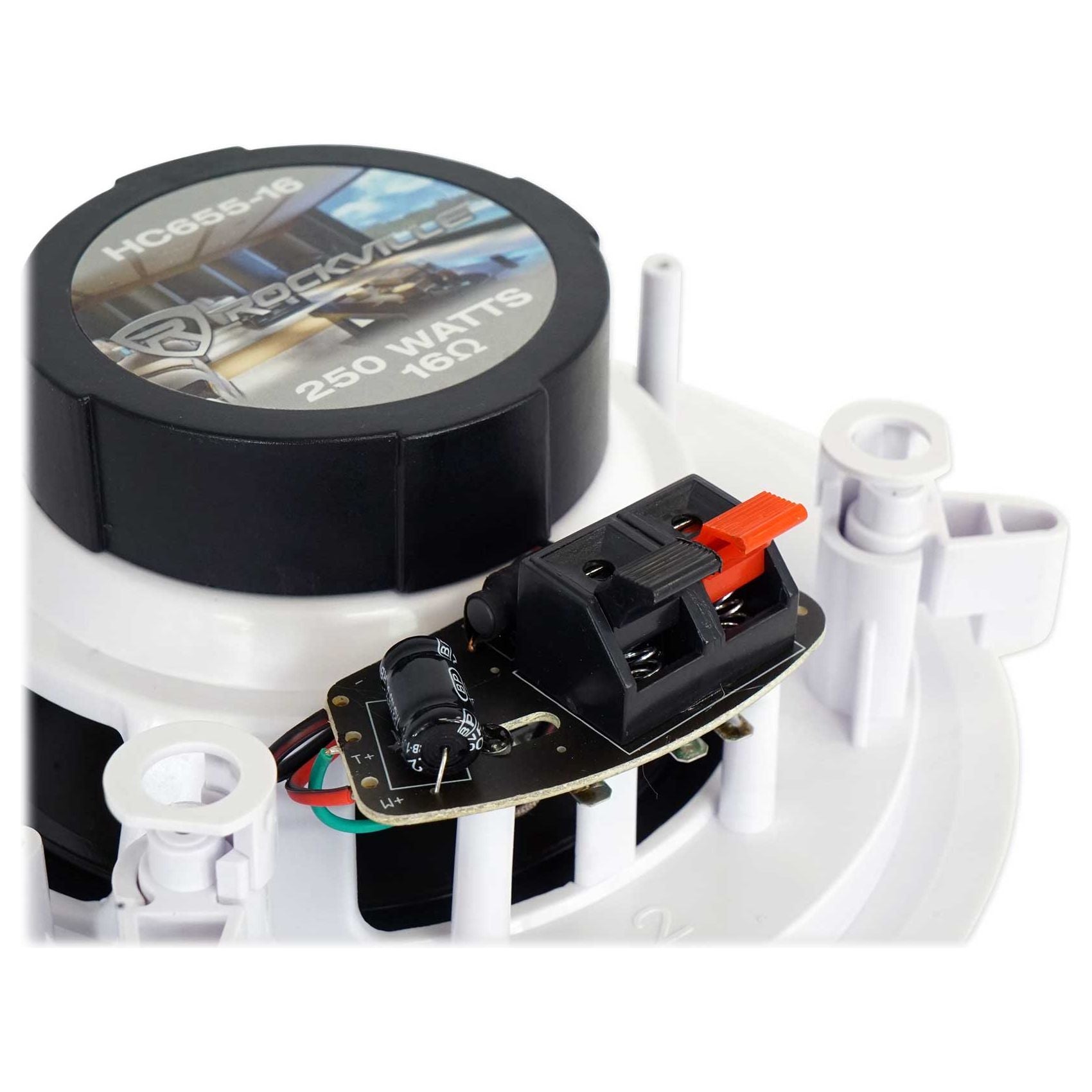 These in-ceiling speakers feature a 6.5” polypropylene cone for clear, rich mids and deep bass. Rubber surrounds eliminate unwanted distortion so all your music sounds loud and clear. Our mylar dome tweeter provides clean, crisp highs. Each pair puts out 160 watts RMS and 500 watts of peak power! This is more than enough power to fill large rooms. The included sheer grill enables flush installation and can be painted to match any décor. Our high quality spring loaded push terminals supply a perfect signal from your amp or receiver. Because these speakers are 16 ohm you can install 8 of them to a stereo receiver in parallel!