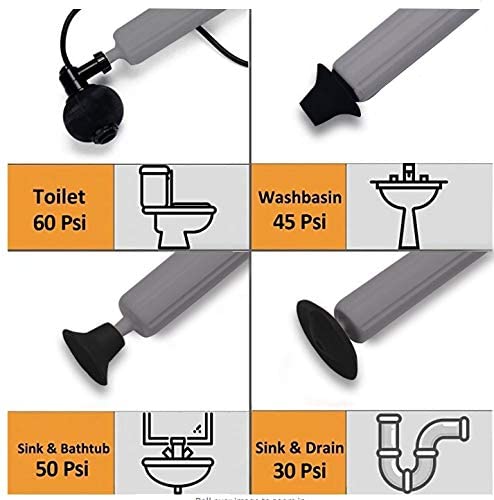 Hassle Free with a Convenient PSI Guide on the Device. Perfect for All Bathrooms, Home, Office, Nursing homes, Businesses, Schools ect. Keep on hand for problematic toilets, sinks and showers to clear the pipes regularly to maintain optimal drainage and clear away any buildup.