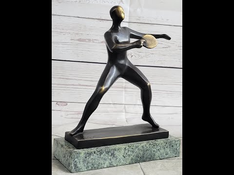 This exquisite Ping Pong Player sculpture stands as a testament to both athletic prowess and artistic craftsmanship. Standing 9.5 inches tall, this genuine bronze artwork captures the dynamic energy of the sport, with a graceful yet powerful form. The sculpture is mounted on a Green base, with a dark brown patina that enhances the richness of the bronze. Signed by the renowned artist Mario Nick, this piece is not only a celebration of table tennis but also a collector's item that showcases top-tier quality and artistry.