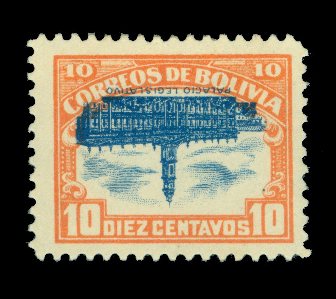 BOLIVIA 1916 Bolivian Parliament 10c INVERTED CENTER Scott # 116c mint MH