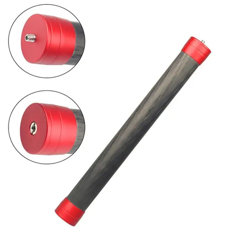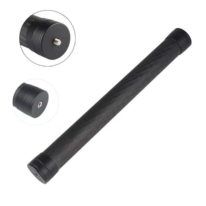 Material: carbon fiber Connector: 1/4 inch screw & 3/8 inch screw hole Length: 34.5cm/ 13.6in Item Weight: 130g/ 4.23oz Package Size: 36 * 4.5 * 4.5cm / 14.2 * 1.8 * 1.8in Package Weight: 150g / 5.3oz Note: Only the extension rod is included. With the extension stick, higher or lower angle video shooting is easy and possible.