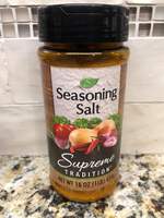 Great spices and seasonings at a fraction of the normal cost! Seasoned salt is a blend of salt, herbs, and spices and is a staple for any kitchen — great with meats, seafood, chips, fries, and so much more. Each bottle has a flip-top lid with a built-in shaker that can lift up for spoon measuring.