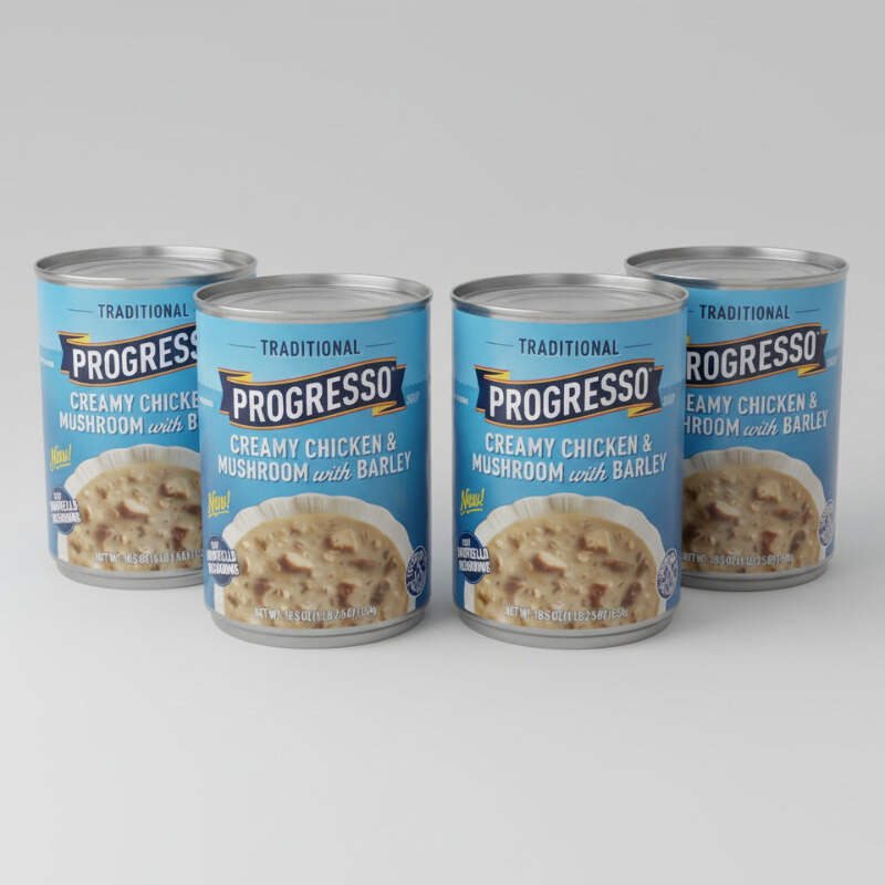 The Progresso Traditional Soups are pretty special. They're the classics. The favorites. All made with quality ingredients and years of practice to get them just right. This Traditional Creamy Chicken & Mushroom with Barley is our creamy take on the classic comfort food – made with all white meat chicken and Portabello mushrooms.