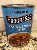 The Progresso Traditional Soups are pretty special. They're the classics. The favorites. All made with quality ingredients and years of practice to get it just right. This Traditional Chicken & Sausage Gumbo Soup is made With White Meat Chicken With No Antibiotics Ever and has no Artificial Flavors.