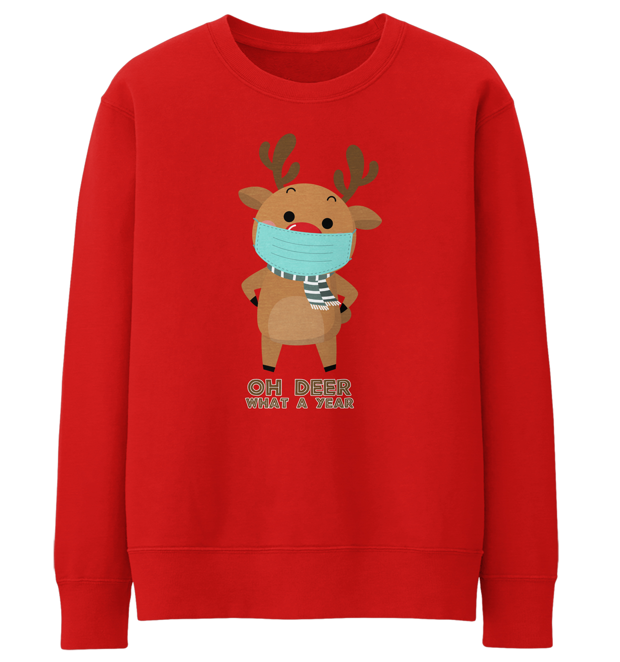 Unisex Oh Deer What A Year Sweatshirt – Funny Christmas Christmas Jumper For Men Women Kids – Cute Reindeer Mask