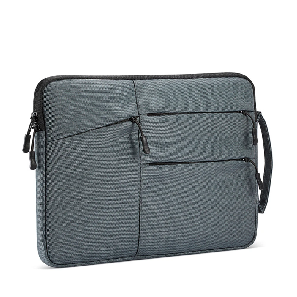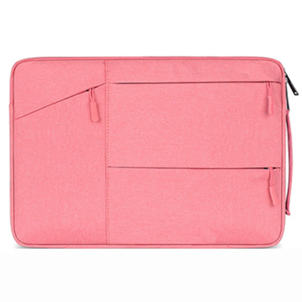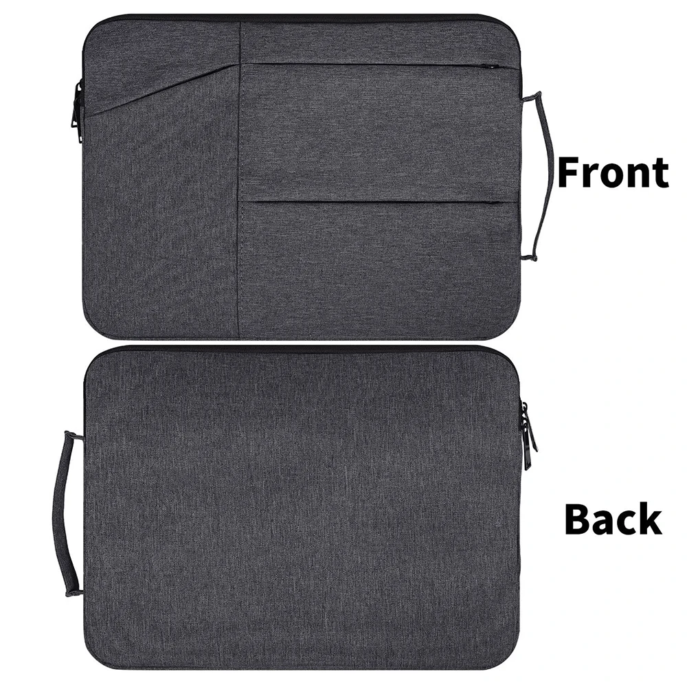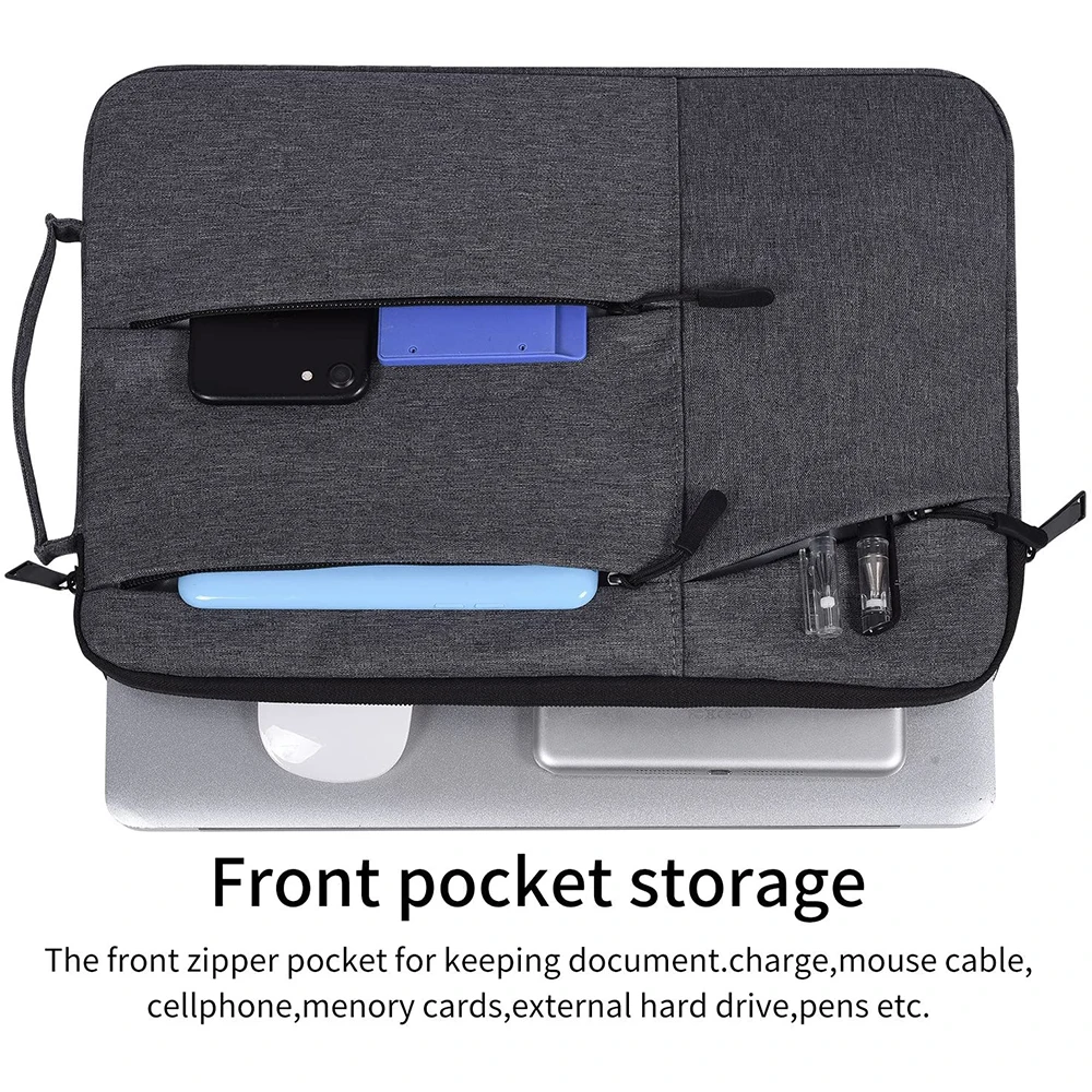 FRONT THREE POCKETS STORAGE & DURABLE ZIPPER - Three pockets in front, enough space to keeping, mouse, cable, cellphone, memory cards, external hard drive, pens, etc. The top-loading zipper on the sleeve glides smoothly and allows convenient access to your laptop
