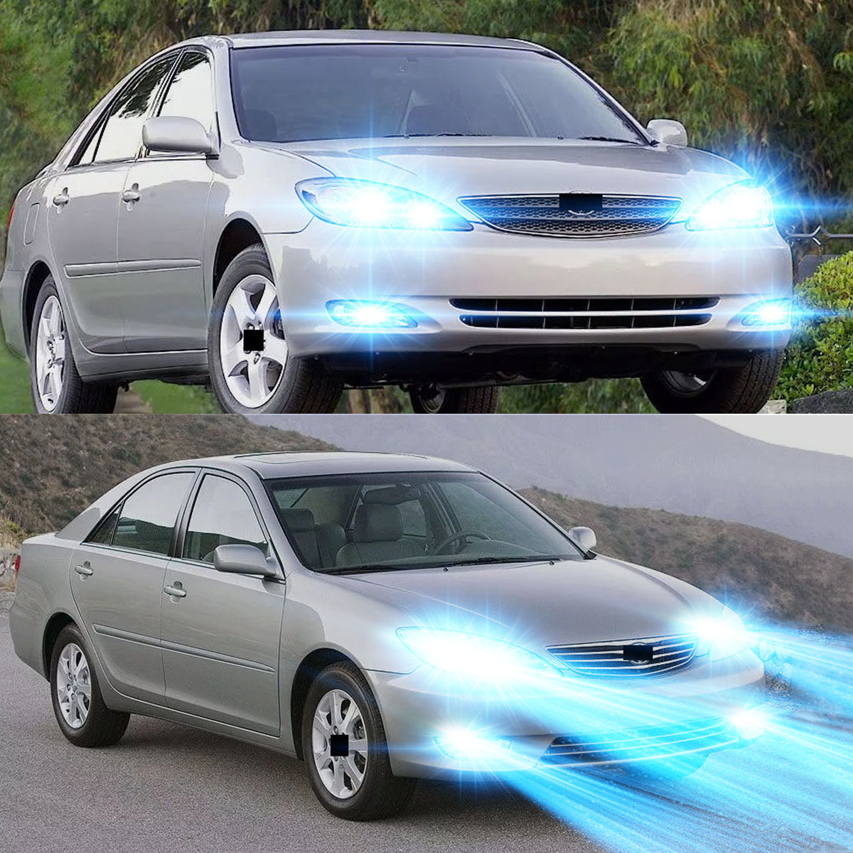 NOTE: Please double check local traffic rules before order, ice blue bulbs are illegal to use in some of the states.. ---Pair 9005 HB3 Replace Factory Halogen High Beam ---Pair 9006 HB4 Replace Factory Halogen Low Beam ---Pair 9006 HB4 Replace Factory Halogen Foglight Technical Specification: Plug Type: High+Low Beam+Fog Light LED Quantity(each bulb): 2pcs* SHENKENUO COB chips Operating Voltage: DC 9-32V(fit 12V,24V vehicles) Color Temperature: Ice Blue 8000K IP68 rated water and dust seal, over 50000hrs lifetime Beam Angle: 360 degree Material: Aviation 6063 aluminum profile Operating Temperature: -40-80 degree Celsius Usage: headlight,fog light Install Caution 1. As a safety precaution, make sure that the car has had time to cool down properly before starting the installation process. 2. Put the vehicle into park or make sure it is securely in gear. 3. Make sure to have the ignition turned off and the keys removed. 4. Be careful to avoid burns, especially when turning on or off the vehicles lighting. 5. Be careful to avoid crushing or cutting the bulbs. Also make sure to not touch the bulbs with your fingers, as this will cause blotting. 6. Fully examine the connection of the contact points, ports and the wires as faulty connections can cause lighting problems. 7. Make certain that the end of the bulb does not come in contact with the interior light shield of the headlight when adjusting the bulb. 8.Please install car headlight dust cover to ensure the normal operation of the lamp (to prevent dust and small ribbons to reduce the chances of bulb cooling fan broken to ensure the normal operation of the cooling system) Advantage: *Latest SHENKENUO COB chip(USA) light source, 2 luminous faces no blind zone *Engineering beam pattern design throw more light on road evenly at appropriate angle without foggy light *Ice Blue light reflect road paint/signs better to show clearer road situation during night driving *270 degree low beam angle with cut-off line, will not dazzle oncoming traffic *Built-in constant current CPU, instant full brightness without start-up relay Package Included: 4Pcs LED Headlight Bulbs 2Pcs LED Fog Light Bulbs |