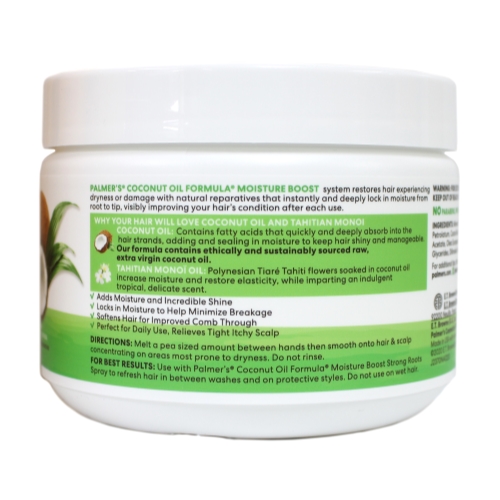 A blend of pure coconut oil, olive and vegetable oils, vitamin E helps end splitting, breaking and dryness. Gives hair a glossy sheen and protects from damage.