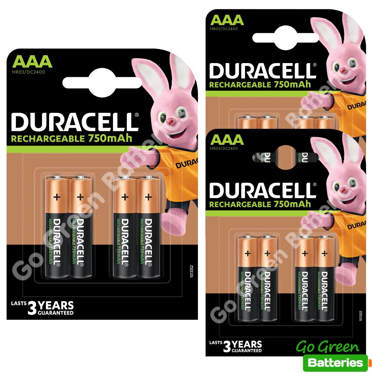 12 x Duracell AAA 750 mAh Rechargeable Batteries NiMH ACCU LR03 HR03 DC2400 Phone