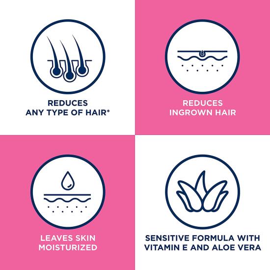 - Sensitive formula with Aloe Vera and Vitamin E to leave skin feeling moisturized